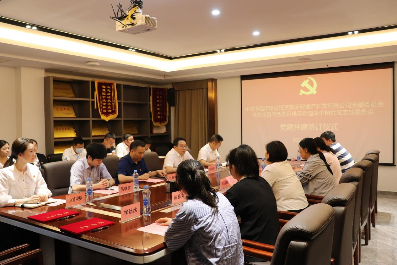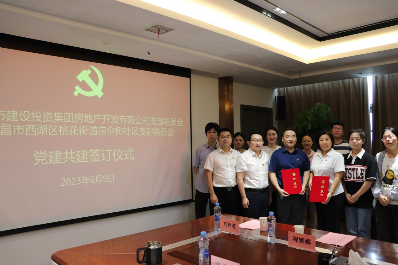 为积极探索创新党建工作新模式,探索联合党建新路径,努力形成组织共建、资源共享、发展共商的党建工作新局面,6月9日,南昌市mk体育在线登录入口_MK SPORTS集团房地产开发有限公司党支部与南昌市西湖区桃花街道凉伞树社区党支部举行了党建共建签约仪式。公司党支部委员、总经理万勇林,党支部委员、副总经理何强科,总经理助理吴瑞雪、技术顾问陈保福出席,双方单位共16名党员参加。