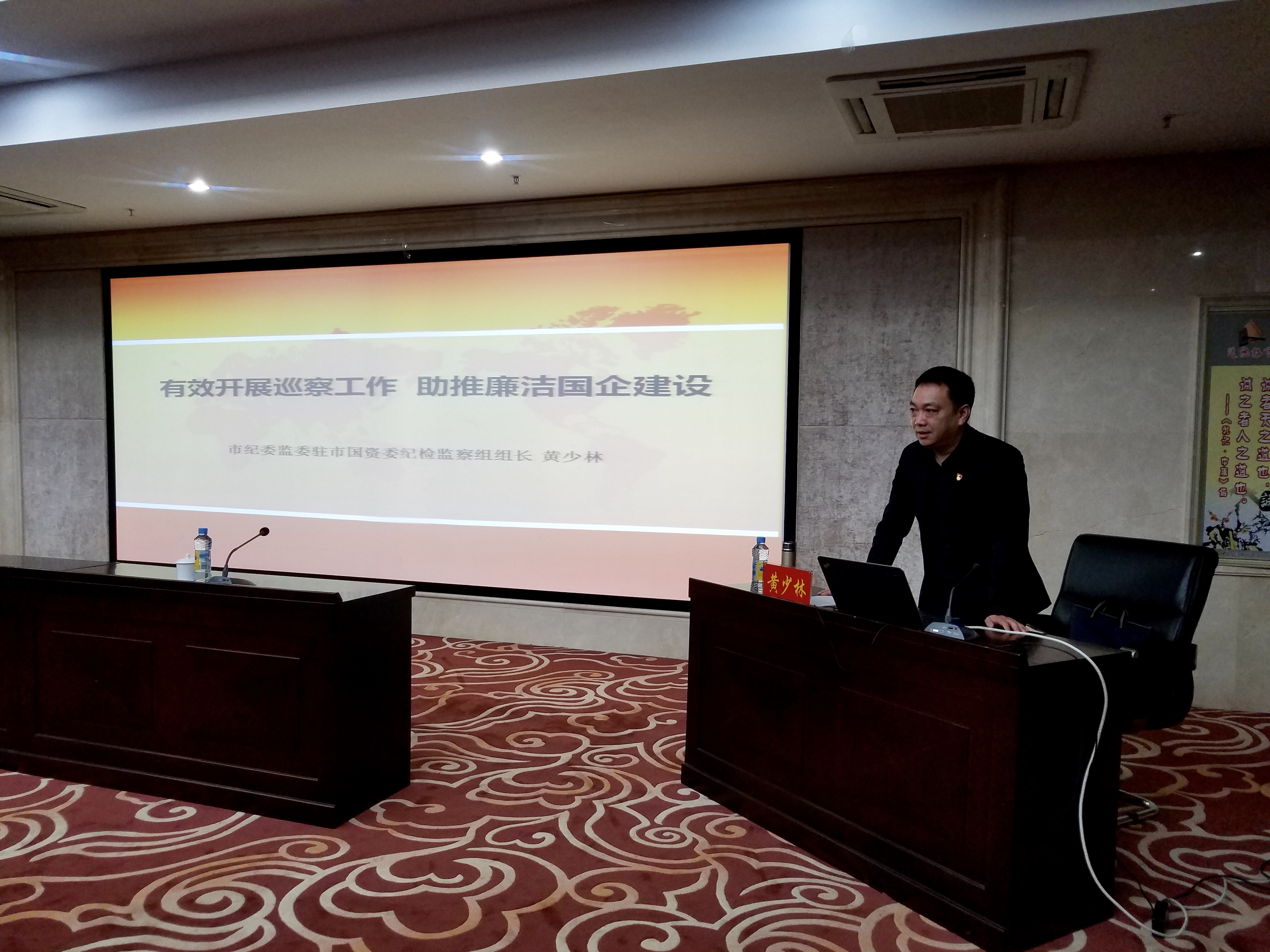 市纪委监委驻市国资委纪检组组长黄少林以“有效开展巡察工作 助推廉洁国企建设”为题,围绕什么是巡察、为什么巡察、巡察巡什么、怎么去巡察、巡完怎么办五个方面详细讲解了巡察工作的具体流程、方式方法,为我司巡察工作小组成员们上好了第一课,为有效地开展好巡察工作夯实了理论基础。