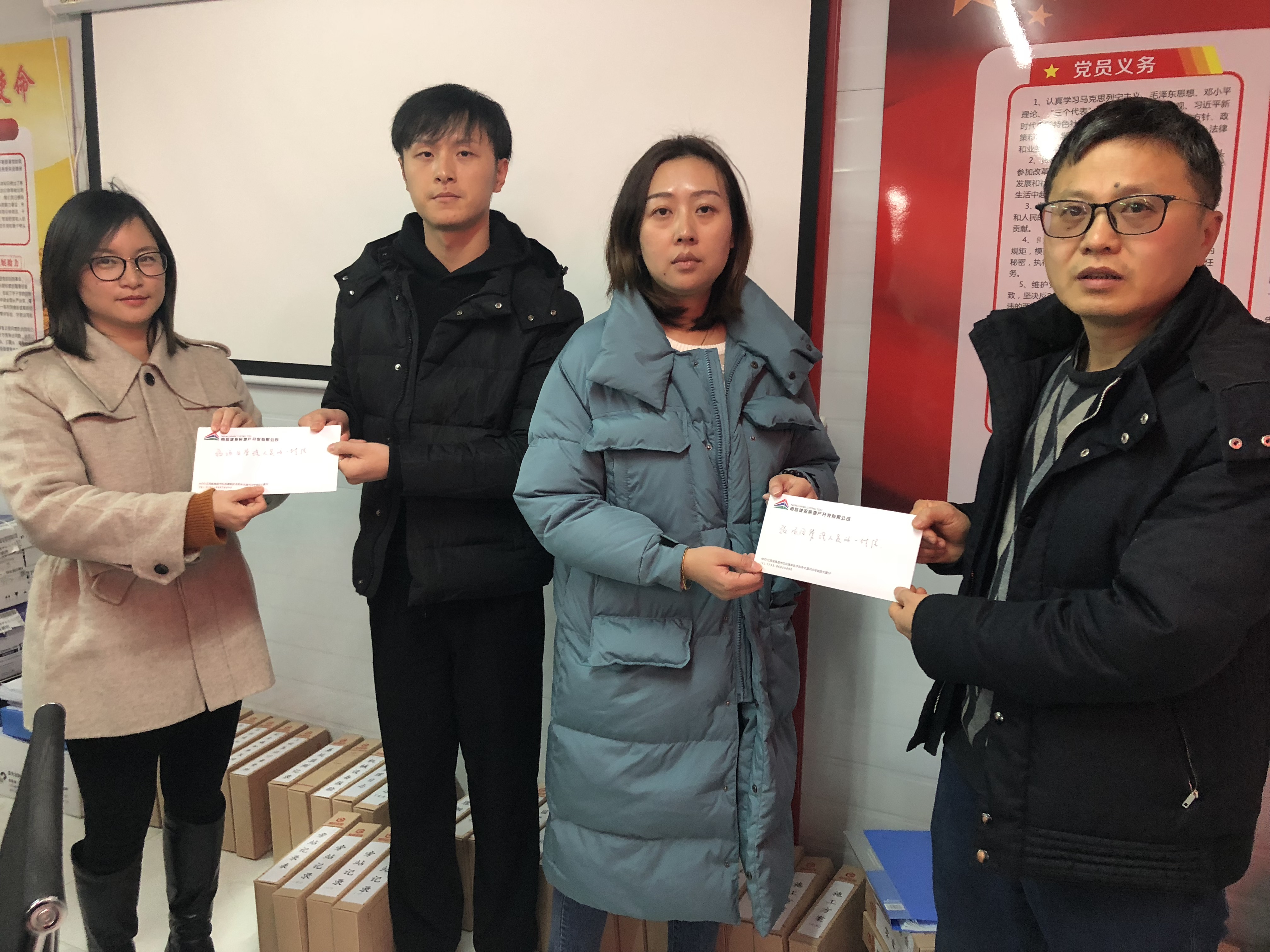 “政廉风正民心顺,纪肃法明万象新”。新春佳节到来之际,为强化南昌城投房地产公司廉洁文化建设,营造崇廉尚俭的节日氛围,助力南昌市中心城区棚户区改造项目廉洁高效的推进,城投房地产公司监察室深入棚改项目一线,向全体棚改项目管理人员发放《致公司项目管理人员的一封信》,共计25份。