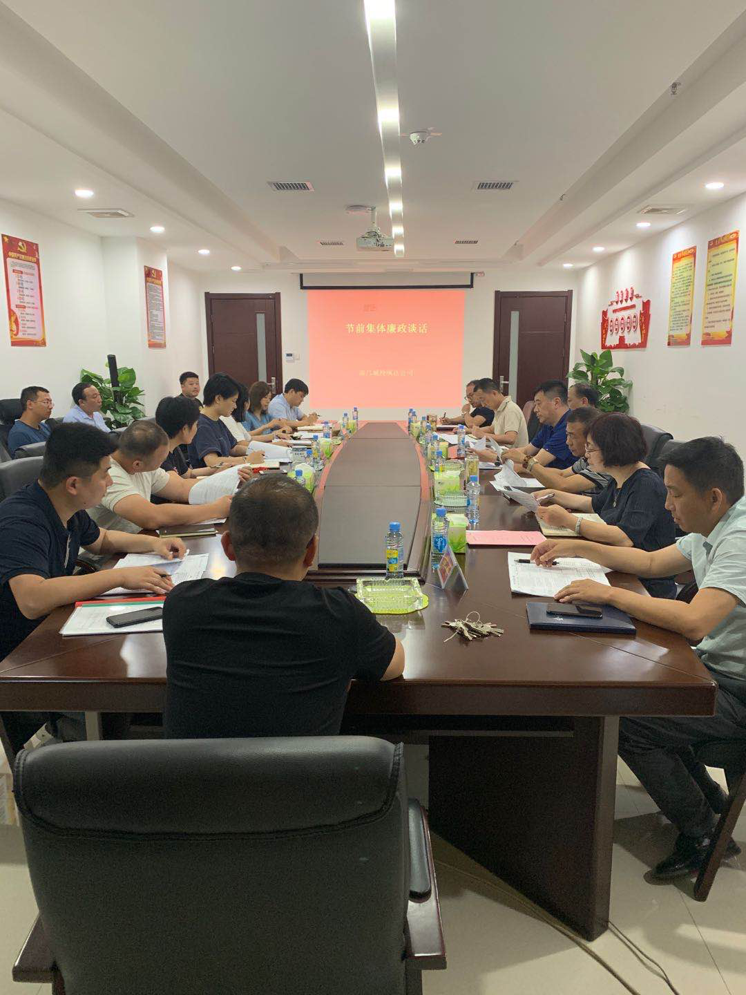 为进一步落实全面从严治党主体责任,切实加强节日期间党风廉政建设,6月16日上午,南昌城投纵达公司党支部开展节前集体廉政谈话,公司全体党员干部参加了此次谈话。