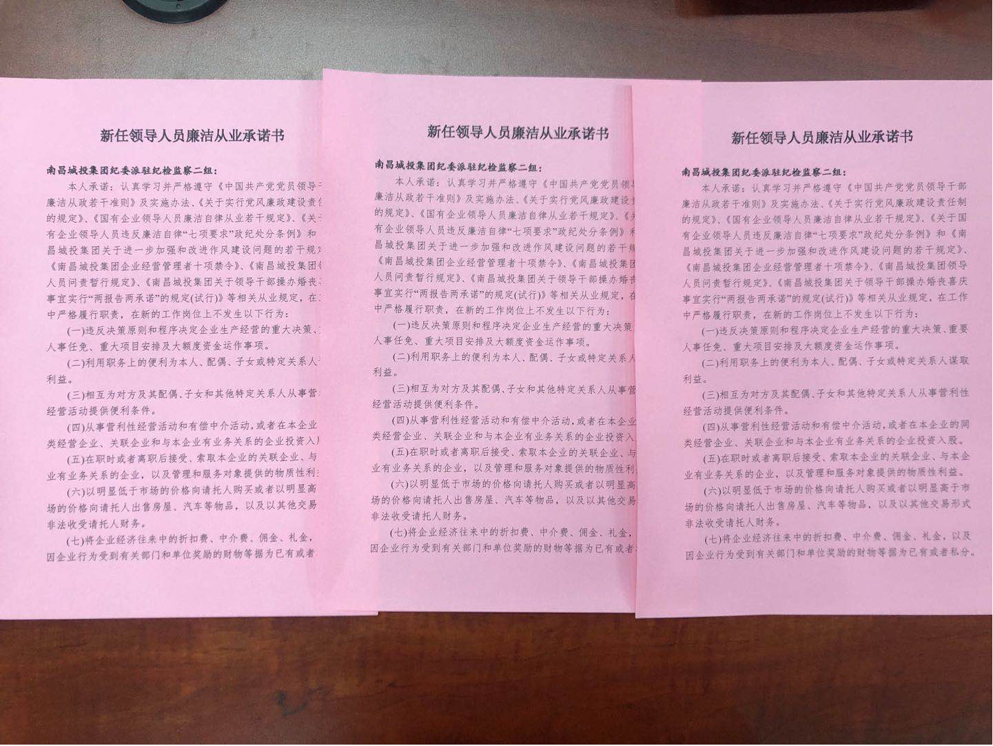 会上,集团纪委派驻纪检监察二组组长邓小娟对2020年上半年四家综合派驻单位的三名新提拔领导人员进行了任前廉政集体谈话。她强调,一要站稳政治立场,加强政治理论学习,树立正确的世界观、人生观、价值观;不忘初心,坚定正确的理想信念,在实践中学真知,提升自身理论水平和修养,自警自醒。二要奋发有为,脚踏实地把本职工作做好、做细、做实,奋力创造工作业绩要敢于担当,主动靠前、敢于负责,凝聚团队力量。三要修身养性,加强自律,始终不渝地保持和发扬艰苦奋斗的优良传统的作风,正确使用手中的权力,做到自身正,自身净,自身硬。按照会议安排,集团纪委派驻纪检监察二组组织三名新提拔领导人员签订了《新任领导人员廉洁从业承诺书》,发放了《劝廉告知书》,还进行了《南昌城投集团新任领导人员党纪法规知识》测试。