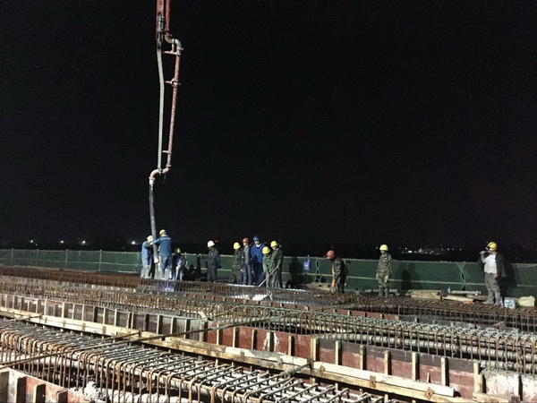 4月10日08时18分,伴随着机械及礼炮轰鸣声,昌东大道南延工程部雄溪河大桥连续梁首次浇筑混凝土准时开盘,本次浇筑总方量为1806方,浇筑桥梁跨度为190米,历时29个小时,于4月11日13时08分浇筑圆满完成!